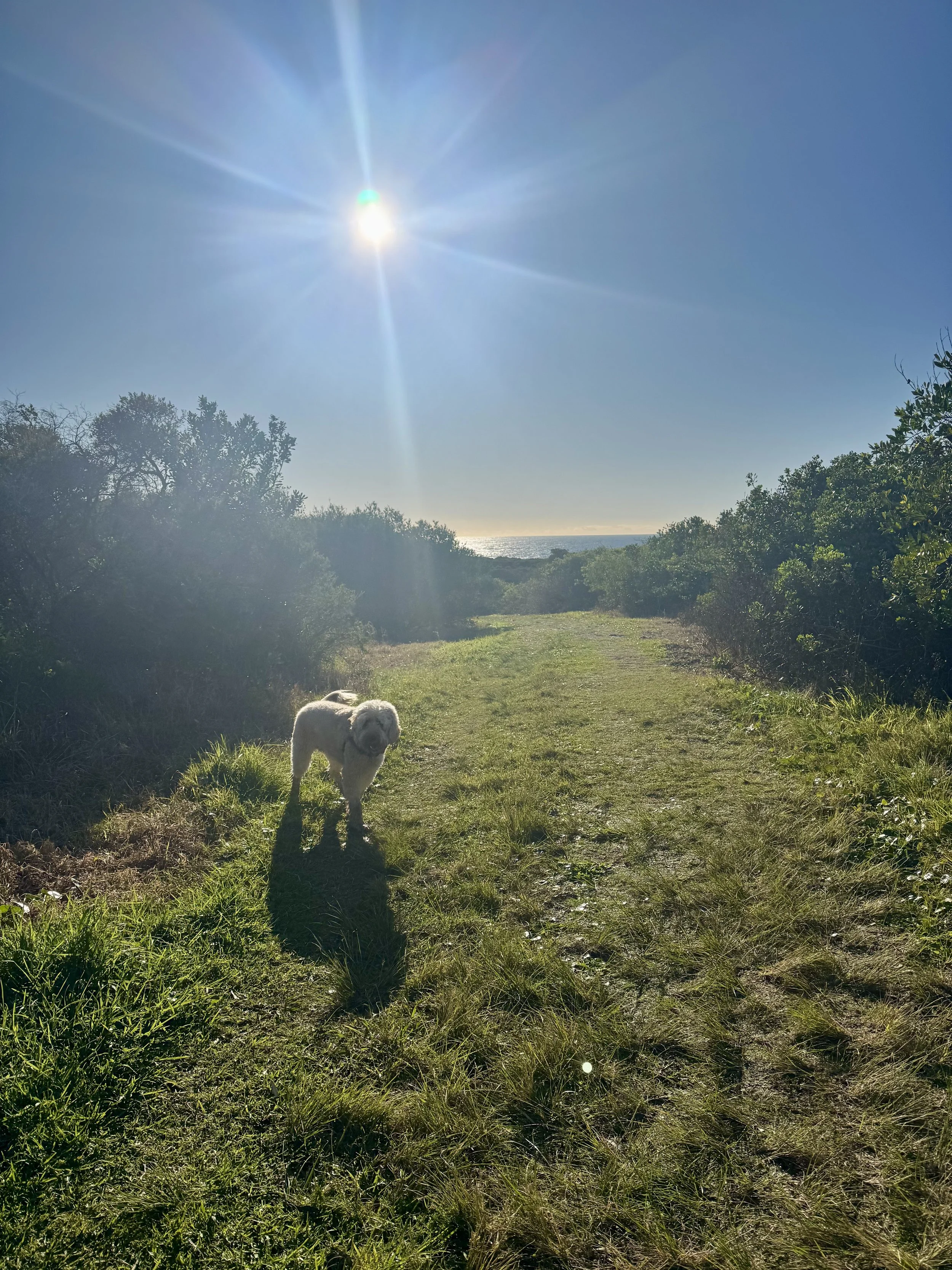 For dogs who need to move — this one’s for the high-energy explorers. We head out on a 60-minute adventure in one of our favourite scenic local spots (think coastal breezes, bushy trails, or big grassy spaces). There’s off-leash time included for dogs with solid recall, so they can stretch their legs, chase the wind, and just be dogs..